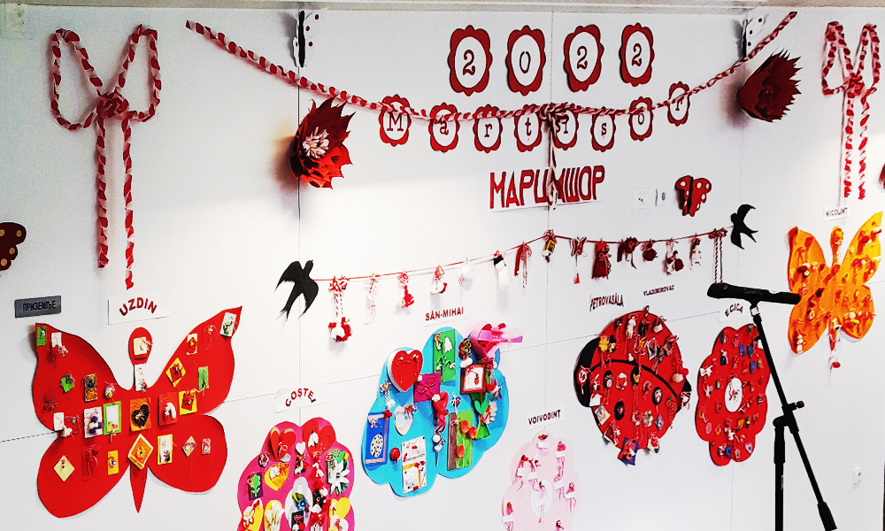 Pe panoul din holul şcolii au fost expuse mărţişoare multicolore, confecţionate de către elevii îndemânatici, îndrumaţi de cadrele didactice de la şcolile elementare din Uzdin, Ecica, Nicolinţ, Petrovasâla, Coştei şi Sân-Mihai. Acest eveniment deosebit s-a desfăşurat fără prezenţa elevilor de la şcolile participante, fiind invitaţi oaspeţi de onoare: Gheorghe Dinu, consul general şi Daniel Bala, ministru-consilier la Consulatul General al României de la Vârşeţ şi Darian Tăpălagă, şeful Cabinetului preşedintelui comunei Alibunar.