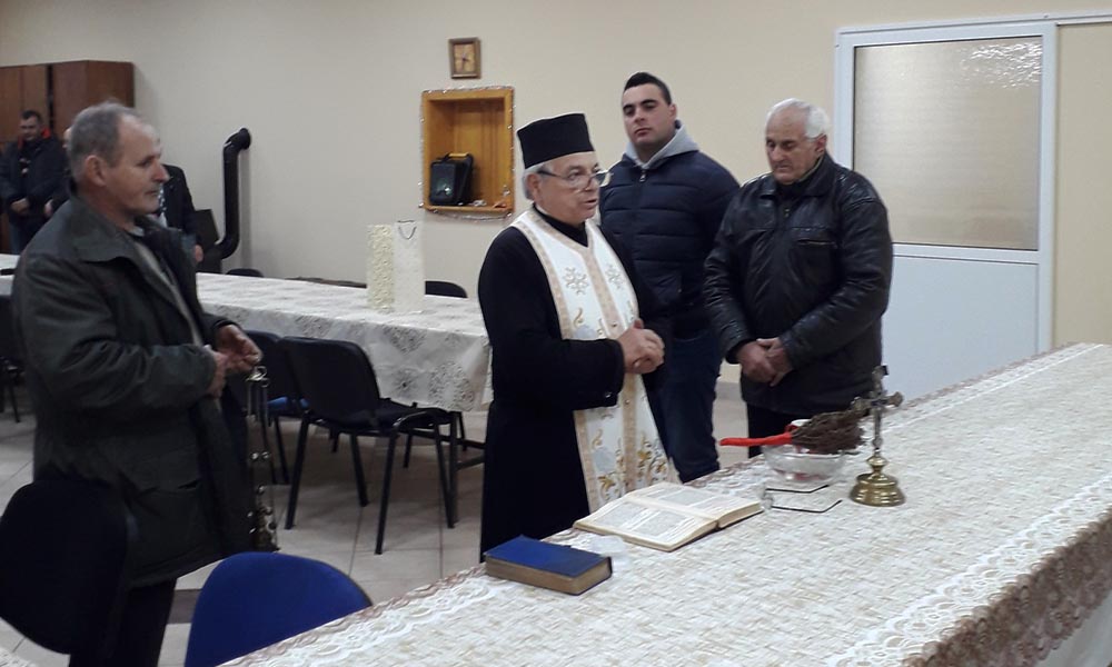 Înainte de Slujba Vecerniei din seara de Ajun, parohul Bisericii Ortodoxe Române din Satu Nou, Gheorghe Ianeș a făcut slujba de sfințire a sălii. Răspunsurile la slujbă le-a dat corul Bisericii Ortodoxe Române din Satu Nou. Slujba a fost oficiată în prezența credincioșilor, care frecventează Biserica Ortodoxă Română din Satu Nou.