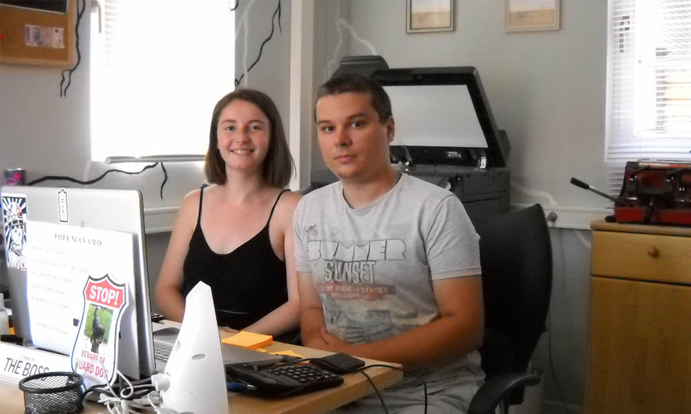 ,,Acest magazin sau atelier specializat, a fost deschis în urmă cu o lună şi jumătate, când eu împreună cu soţia mea Victoria, am ajuns la ideea de a începe o afacere proprie care va atrage interesul clienţilor şi beneficiarilor de servicii administrative. A fost acesta şi un moment oportun şi pentru faptul că mulţi clienţi vizitează Biroul notarului public, pentru a depune o documentaţie necesară spre validare, având şi necesitatea de a xeroxa sau de a face o fotocopie a documentelor. De fapt, Biroul notarului public se găseşte în curtea casei părinţilor mei, Remus şi Cornelia Berlovan, acesta fiind şi un noroc al nostru de a iniţia această afacere proprie. La început ni s-a părut un lucru neobişnuit, dar iată că pe parcurs a trezit interesul printre vizitatorii şi clienţii care apelează la ajutorul şi serviciile oferite de notarul public. Am avut un sprijin din partea părinţilor şi prietenilor, şi astfel ideea noastră s-a transpus într-o afacere pe care amândoi am dorit-o mai demult. Între timp, ne-am procurat aparate de printat şi copiat a cunoscutului producător ,,Konika”, având în vedere şi faptul că eu am fost angajat pe un post similar la un magazin de papetărie din Timişoara, unde am absolvit studiile de management în administraţia de stat. În magazinul nostru, pe lângă prestarea serviciilor de xeroxare şi copiere a documentelor, clienţii pot procura şi material pentru birou şi administraţie: hârtie albă pentru copiator, lipici fără solvenţi, set pixuri şi radiere, banda dublu adezivă, etichete, banda adezivă transparentă, capse, marker tablă, perforatoare, caiet capsat.