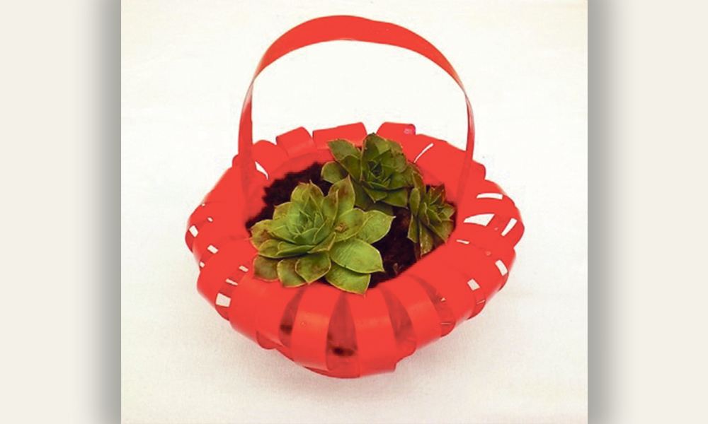 5. Ultimul pas constă în vopsirea coșulețului cu lac (spray) acrilic în culoarea în care ne dorim. Eu am ales culoarea roșie și am pulverizat foarte ușor să nu se facă stropi (poza 5). În ghiveciul uscat am pus pâmănt îmbinat cu humus de flori și am plantat trei pui de urechelniță. Urechelnița este o plantă erbacee perenă din genul Sempervivum, dar este folosită și ca o plantă medicinală și ornamentală. Am plantat puii în trei parți pentru ca planta să se înșire până la primăvara.