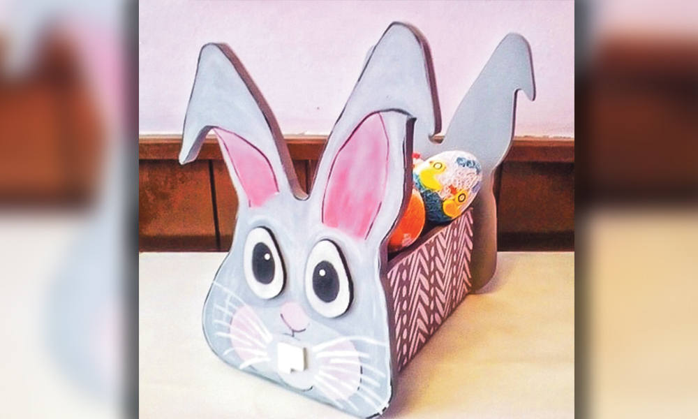În articolul acesta terminăm coșulețul în formă de iepuraș pe care l-am pictat în articolul anterior pe o parte. De data aceasta îl pictăm și pe cealaltă partea și facem decupaj pe coșuleț. (poza 1)
