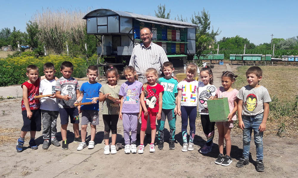 Însoțiți de educatoarea lor, miercurea trecută, preșcolarii au avut ocazia de a cunoaște mai îndeaproape tainele apiculturii. Membrii familiei Lelea i-au primit cu brațele deschise. Au răspuns la toate întrebările, le-au demonstrat cum se scoate mierea, cum trăiesc și muncesc albinele în comunitatea lor și multe altele. Copiii au avut ocazia să îmbrace halatul cu pălărie specială pentru apicultori și să țină în mânuțele lor ramuri cu miere. Au recitat poeziile și au cântat cântecele despre albine pe care le-au învățat la grădiniță, iar familia Lelea a fost încântată ascultându-i pe micuții oaspeţi.