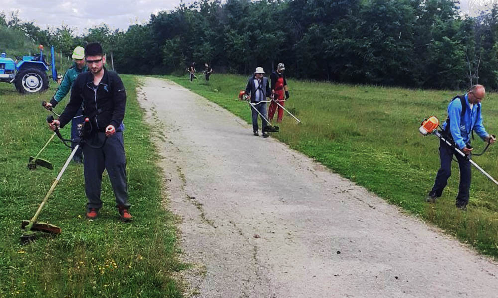 Pentru a duce mai rapid și mai ușor lucrările la bun sfârșit, sătenii s-au împărțit în grupuri. O grupă a tăiat iarba, altă grupă a îndepărtat crengile putrede și deșeurile de plastică din pădure.