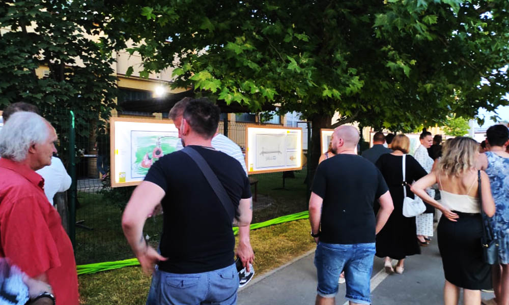 Pe promenada de-a lungul canalului Bega, în curtea tipografiei „Diginet”, lângă debarcaderul nou construit, luni, 8 iulie, a fost vernisată expoziția de la prima Tabără Internațională de Caricatură, intitulată „Viața pe râu”. Deschiderea expoziției a fost prilej de inaugurare a galeriei în aer liber intitulată „Pristan”, care în perioada următoare, prin diferite conținuturi culturale, va reînvia și îmbogăți viața artistică din această zonă a spațiului public zrenianinean. A fost o expoziție deosebită cu o numeroasă participare a publicului din orașul de pe Bega, iubitor, iată și de caricatură.