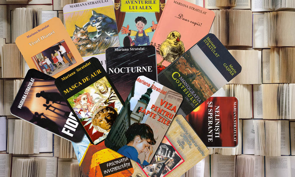 Este anul 1989. Mariana Stratulat, elevă la școala din Coștei, își înmoaie penița în călimara cu cerneală și scrie poezie. Primește premiul I al revistei ,,Bucuria copiilor”. Nu știm dacă în acel moment a fost conștientă de faptul că poezia premiată a fost primul pas pe calea creației, a literaturii, dar de ceea ce a urmat nu ne îndoim: forțele creatoare s-au unit cu patosul scrierii. Din acest conglomerat au rezultat 14 cărţi – fie de autor, fie scrise împreună cu alţi autori. Aceste cărţi constituie, alături de cariera de jurnalist, un semn distinct în biografia Marianei Stratulat.