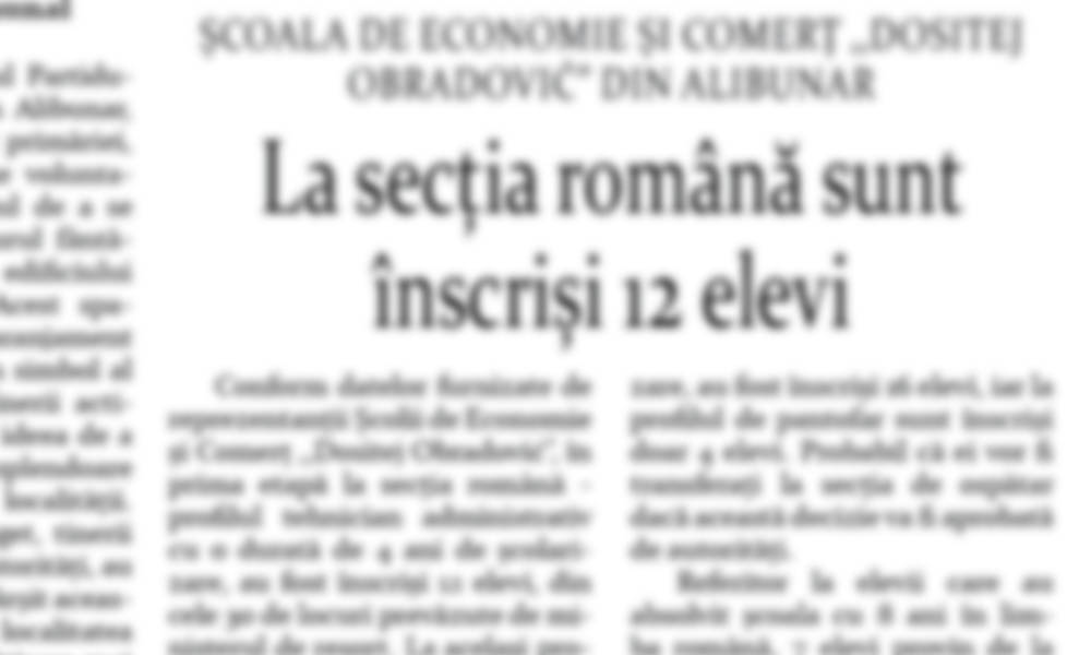 Conform datelor furnizate de reprezentanții Școlii de Economie și Comerț ,,Dositej Obradović”, în prima etapă la secția română – profilul tehnician administrativ cu o durată de 4 ani de școlarizare, au fost înscriși 12 elevi, din cele 30 de locuri prevăzute de ministerul de resort. La același profil, cu limba sârbă de predare, au fot înscriși 21 de elevi, din 30 de locuri stabilite de prescripțiile legale. În etapa a doua de înscriere vor fi posibilități de completare a locurilor vacanțe, la ambele secții cu același profil și durată de școlarizare. Când este vorba de crearea profilului de meseriași, la secția în limba sârbă a profilului de ospătar, cu durata de 3 ani de școlarizare, au fost înscriși 16 elevi, iar la profilul de pantofar sunt înscriși doar 4 elevi. Probabil că ei vor fi transferați la secția de ospătar dacă această decizie va fi aprobată de autorități.