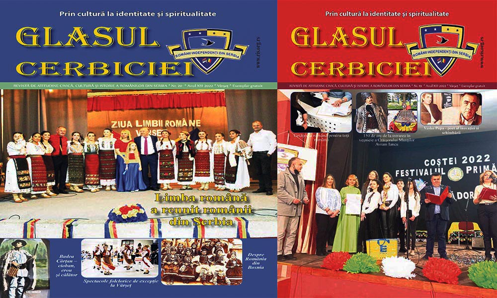Luna decembrie este luna cadourilor. Pornind în această ordine de idei, Asociația „Românii Independenți Serbia (RIS)” ne bucură cu încă două numere ale revistei de atitudine civică, cultură și istorie a românilor din Serbia „Glasul Cerbiciei”, numerele 19 și 20, redactor: dr. Dorinel Stan, redactori tehnici: Aneta și Gabriel Gașpăr.