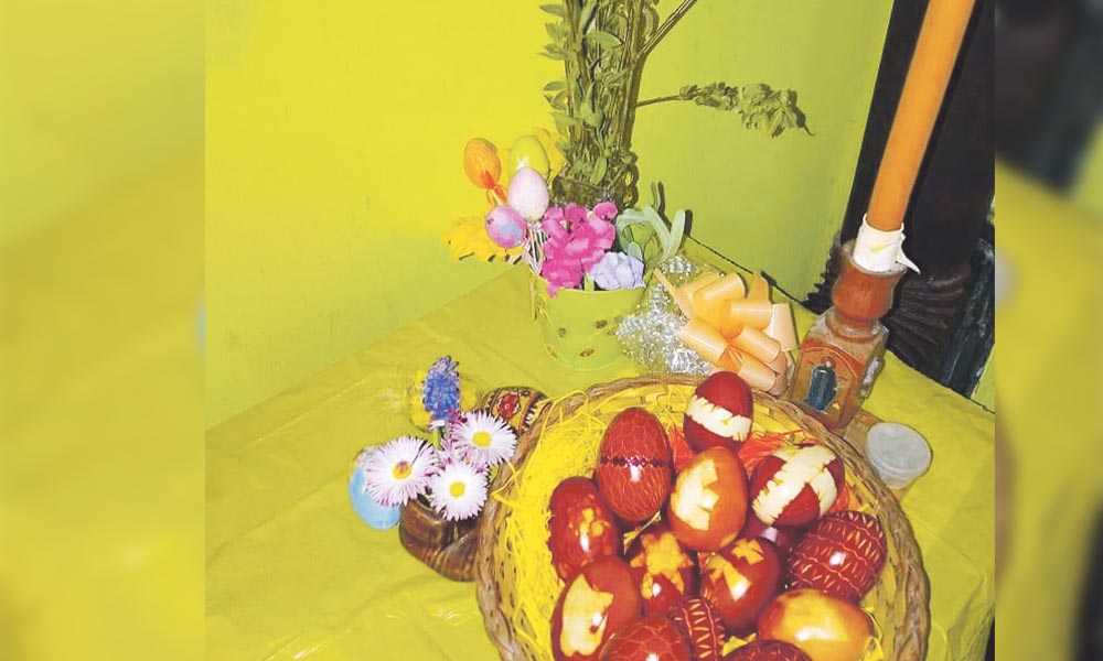 Pentru cea mai mare și mai fericită sărbătoare a Sfintelor Paști, creștinii de la noi din sat se pregătesc cu câteva săptămâni înainte. Gospodinele deretică prin casă, se face curățenia de primăvară, se plantează panseluțe și alte flori, care sunt mai rezistente la temperaturi scăzute și care știu să ne surprindă și în zilele lui Prier. Preotul nostru, Ionel Savu, pleacă din bun timp să sfințească apa în casele creștinilor. Această apă o lăsăm la o parte, într-o sticluță, și punem din ea în bucatele pe care le preparăm de Paște, precum și în aluatul pe care îl frământăm pentru colacul pe care îl punem în mijlocul mesei.
