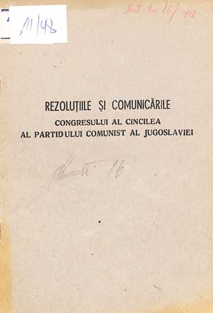 Rezoluția Congresului al Cincilea al PCJ asupra rapoartelor Comitetului Central al PCJ expuse de tovarășii Iosip Broz – Tito, Alexandar Rankovici și Milovan Gilas.