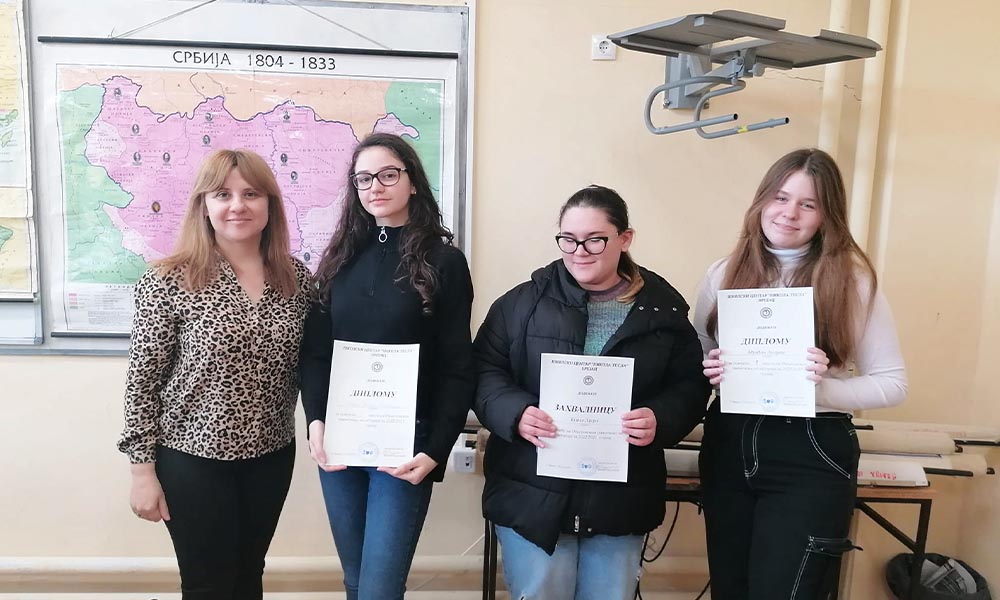Elevii Liceului „Borislav Petrov Braca” din Vârşeţ au obţinut succese frumoase la competiţiile de istorie – faza comunală, care s-au desfăşurat recent la Centrul Şcoalar „Nikola Tesla”. Şi anume: Sara Kojić (III3) – locul I, mentor prof. Neven Daničić; Andrea Muncean (II5) – locul I, mentor prof. Daniela Barbu; Alexandra Cebzan Zeman (III5) – locul I, mentor prof. Daniela Barbu şi Bojan Minić (IV3) – locul III, mentor prof. Slobodan Lauš.