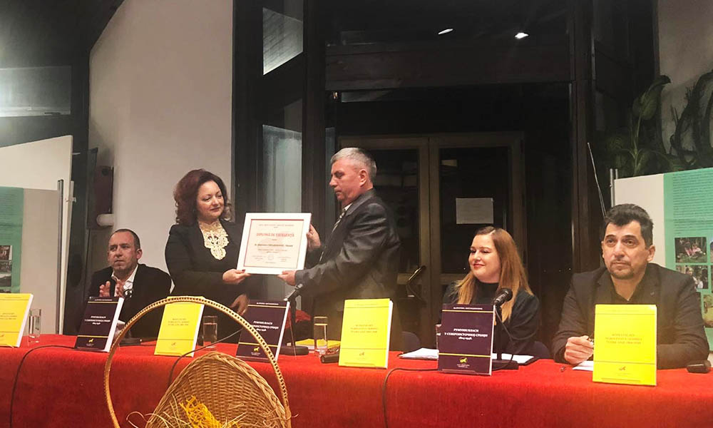 Mariana Stratulat, director al C.P.E. ,,Libertatea”, i-a oferit domnului dr. Draghișa Costandinovici o diplomă de excelență pentru contribuția la păstrarea și promovarea culturii și a identității românești.