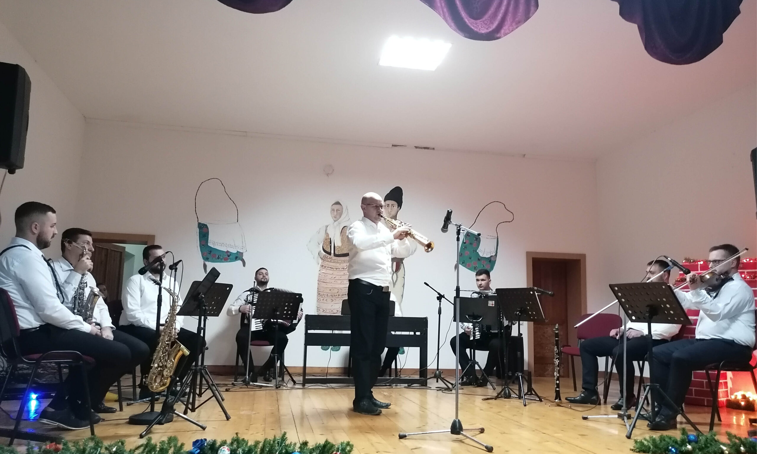 Concertul l-a deschis Andrei Tăpălagă din Sân-Mihai, care a interpretat la clarinet o melodie populară românească. După aceea, pe scenă a evoluat tânăra solistă vocală Teodora Mic din Satu Nou. Leonid Ardelean din Nicolinț s-a prezentat cu câteva melodii populare. Solistul instrumentist Adrian Jivcu din Petrovăsâla a impresionat publicul cu măiestria interpretării. L-am ascultat şi pe Adrian Stoian din Satu Nou. Farmecul cântecului popular românesc l-a adus şi tânăra solistă vocală Andrea Șoșdean din Uzdin. Momente inedite a creat şi Adrian Cebzan din Satu Nou. După aceea, pe scenă au evoluat şi: Crăciun Crețu din Uzdin, Cristina Mic din Satu Nou, Leonid Ardelean din Nicolinț, Boian Boleanț din Satu Nou și Marin Puia din Uzdin. La sfârșitul programului, orchestra Căminului Cultural din Satu Nou s-a prezentat cu o doină și cu un joc de doi.