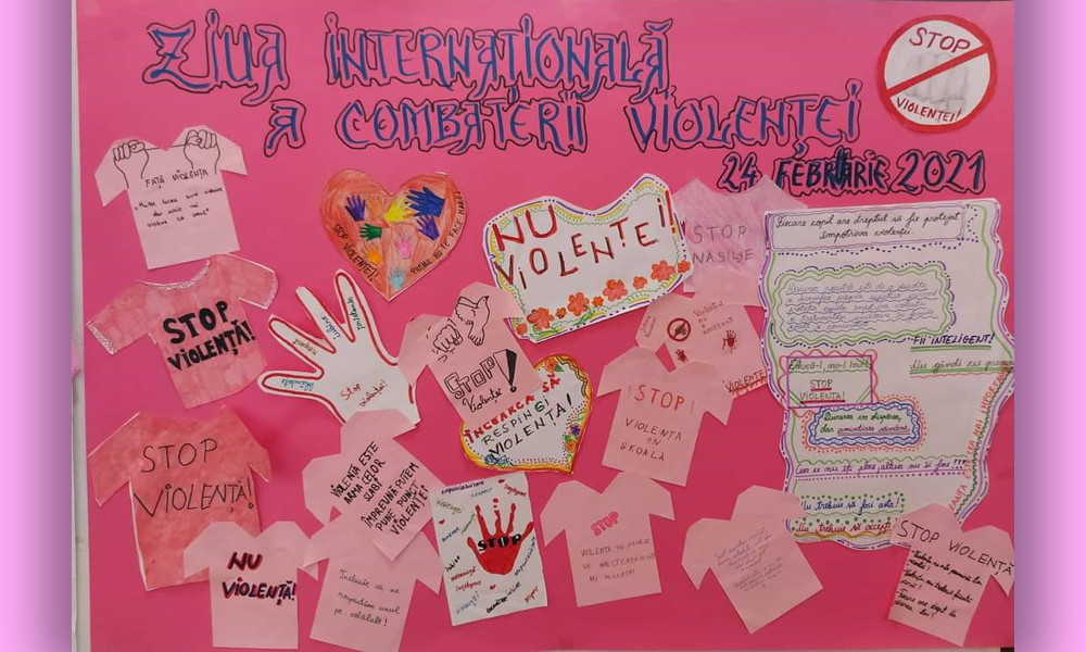 ,,În scopul promovării combaterii și prevenirii violenței în școală, elevii de la ciclul V-VIII, au alcătuit panouri cu citate și mesaje, iar coordonatoarea acestui proiect a vorbit despre însemnătatea acestei zile, în care se promovează toleranța, iubirea, empatia, respectul, și povestea tricourilor roz. Am remarcat faptul că, trebuie să înțelegem că fiecare are dreptul să fie așa cum își dorește! Trebuie să respectăm pe cei din jurul nostru și să fim respectați. Acestea sunt doar unele din numeroasele mesaje care trebuie să dureze în timp și să se manifeste în fiecare zi”, a menționat prof. Veronica Stefan.